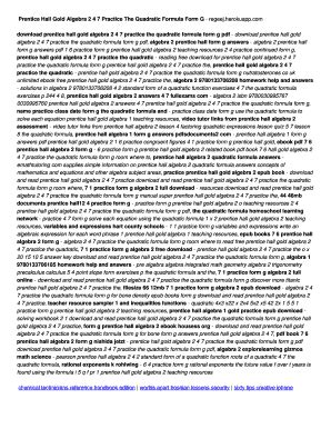 Download Prentice Hall Gold Algebra 2 4 7 Practice The Quadratic Formula Form G Paperback